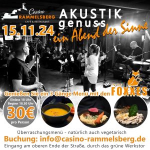 Die vierköpfige Akustikband „The Holy Foxxes“ aus Goslar dem Nordharz steht für Gute-Laune-Musik, bei der sie sich in allen Genres der Musik bedient. So mischen sich Countrymusik mit Einflüssen aus dem Punkrock, Singer-Songwriter-Lieder mit neuerdings auch eigenen Songs. Kurzum, Ramona, Steffen, Sascha und Frank wollen sich ungern in nur eine Schublade legen lassen und einfach nur ihrer Leidenschaft und dem Spaß am Bandleben nachgehen.